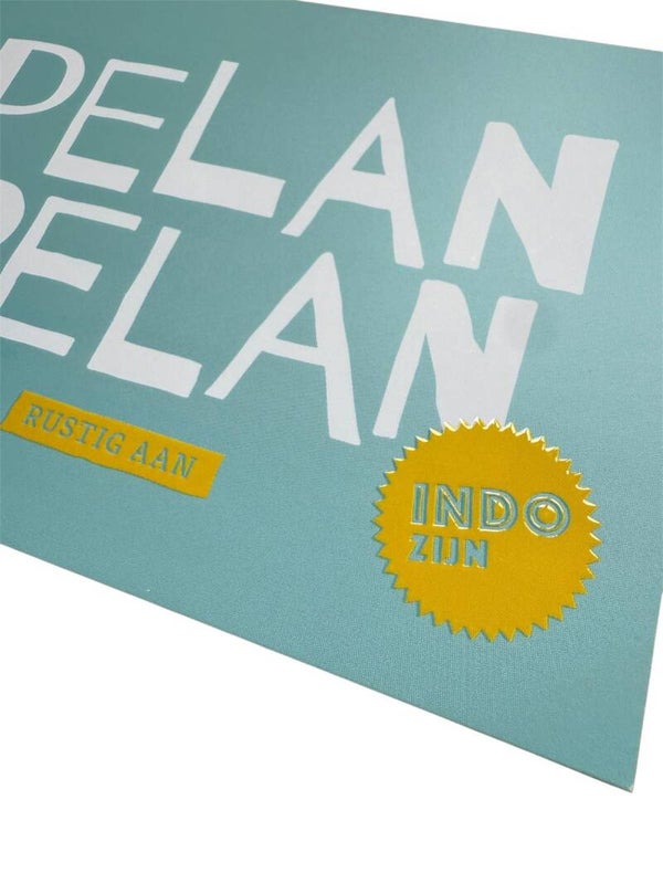 Bedrukking : label indozijn en rustig aan bedrukt met spot uv lak, ligt er iets op en glimt.